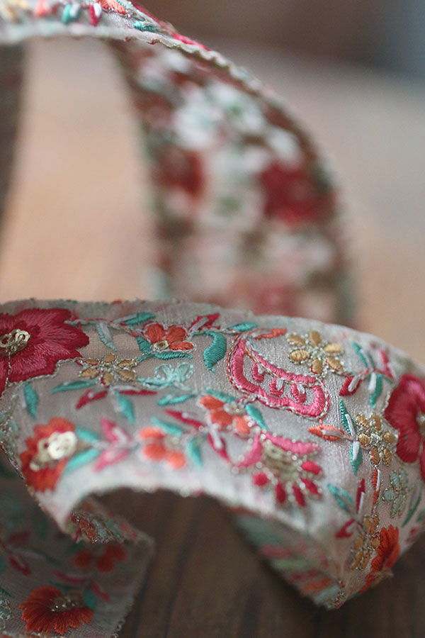 Dekorband - organza med röda blommor