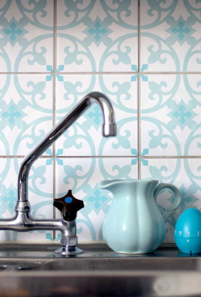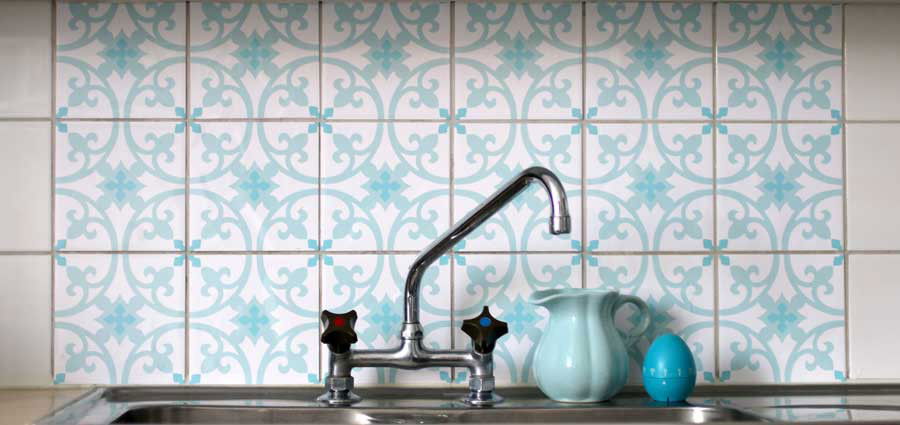 Kakeldekor i marockansk stil i turkos och vitt med mönster som passar in i kök och badrum. Ljus och härlig dekor med turkos och vitt, lyser upp ditt kök eller badrum garanterat.
