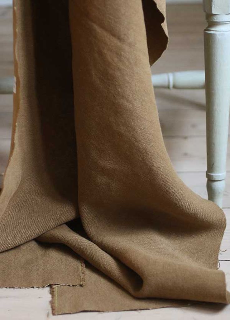 Linnetyg i kraftigare kvalitet för möbeltapetsering i gulbrun färg. Tyget är förtvättat och har mjuk och behaglig känsla samt en snygg vintage-look.