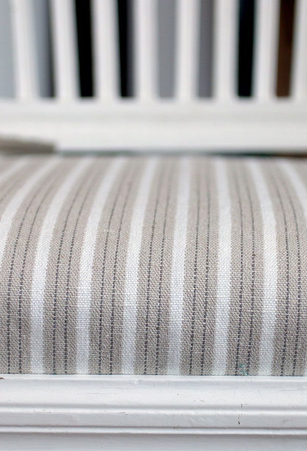 Kraftigt linnetyg med traditionella ränder. Tyget är lämpligt för möbler, draperier samt hiss-gardiner. Mycket följsam och skön kvalitet så det skulle även fungera bra till ett klädesplagg.