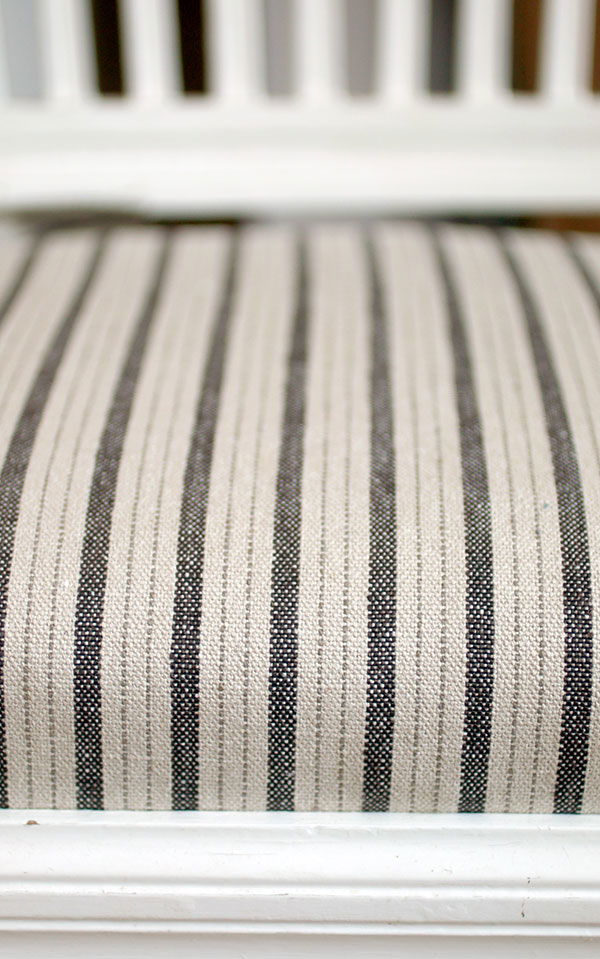 Kraftigt linnetyg med traditionella ränder. Tyget är lämpligt för möbler, draperier samt hiss-gardiner. Mycket följsam och skön kvalitet så det skulle även fungera bra till ett klädesplagg.