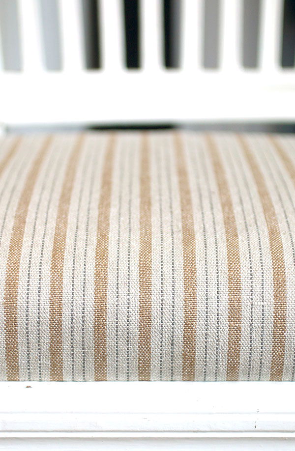 Kraftigt linnetyg med traditionella ränder. Tyget är lämpligt för möbler, draperier samt hiss-gardiner. Mycket följsam och skön kvalitet så det skulle även fungera bra till ett klädesplagg.
