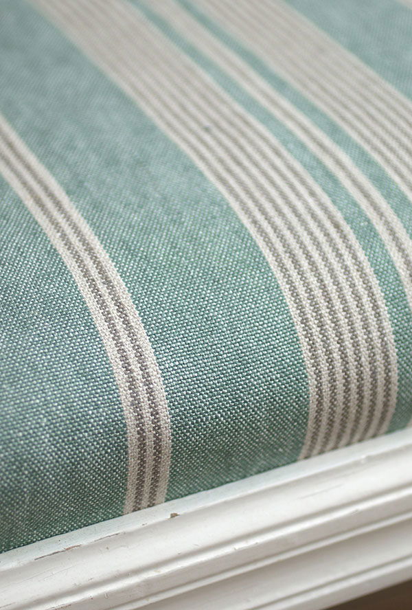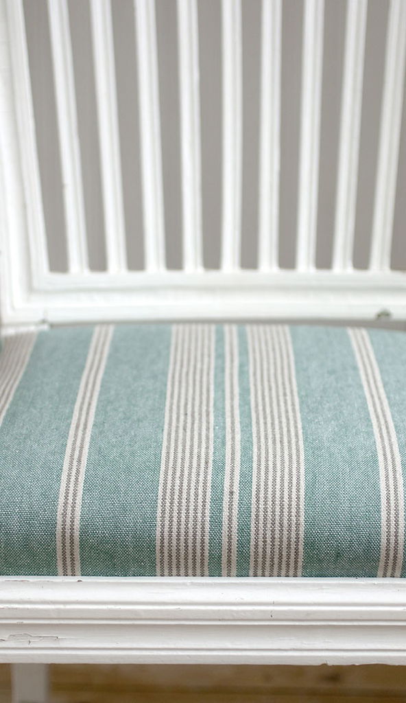 Kraftigt linnetyg med vackra stilrena ränder. Tyget är lämpligt för möbler, draperier samt hiss-gardiner. Mycket följsam och skön kvalitet så det skulle även fungera bra till ett klädesplagg.