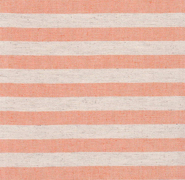 Randigt möbeltyg i bomull och lin från Berghems Väveri. Hampus i orange har en melerad offwhite botten med en varm orange rand och ett mjukt, tidlöst uttryck.