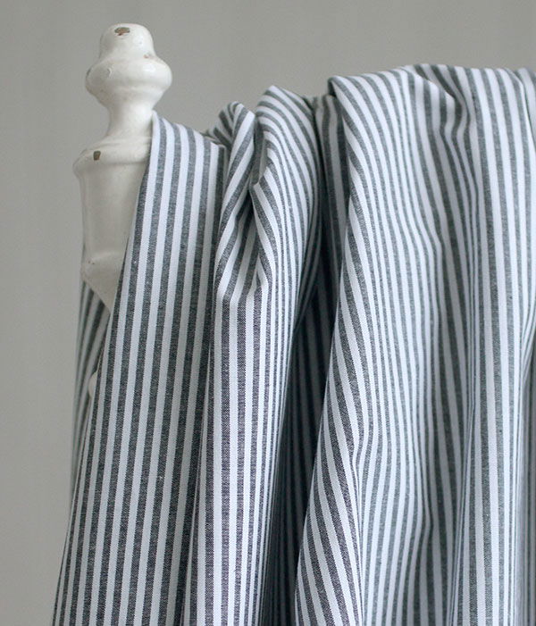 Smalrandigt tyg med ränder i svart och vitt, vävt så ränderna syns på båda sidor.