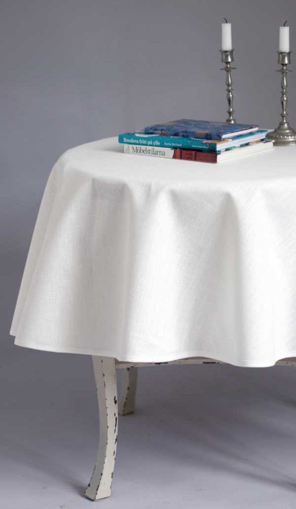 Äkta linnevaxduk i 100% lin. Ytbehandlad linneduk som inte är blank utan ser ut som en linneduk. Duken är behandlad med akryl och tål att man spiller på den. Fukten lägger sig som pärlor ovanpå duken och man kan då lätt torka av. Även fläckar fäster inte i första taget, man ska förstås inte vänta för länge med att torka av så fläcken hinner ”bita sig fast”. Ketchup, barnmat med tomat, andra tomatprodukter samt rödvin ska man vara snabb och torka av, annars blir det fläckar som inte går bort. Den här duken är ett bra val för de som vill ha en duk i hög kvalité med vackert strikt utseende men ändå är tålig. Duken är även Oekotex certifierad enligt standard 100. Det innebär att tillverkaren garanterar att det inte finns skadliga ämnen i produkten. Det går att tvätta den i 30 grader i maskin med det ska vara UTAN centrifug och UTAN sköljmedel. Man ska vara medveten om att varje gång man tvättar duken så försämras ytbehandlingen lite. Det bästa är att torka av den med fuktad disktrasa så länge det går. (gnugga inte).